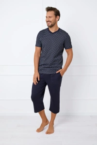 Ricardo Pijama cu mânecă scurtă pentru bărbați, pantaloni lungi Italian Fashion - albastru marin