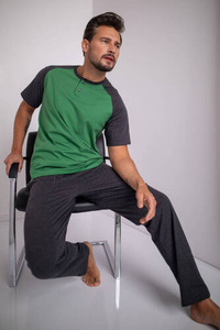 Alexander Pijama cu mânecă scurtă pentru bărbați, pantaloni lungi Modă italiană - verde/c.melange