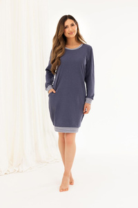 Cămașă de noapte de damă 159 Regina, bleumarin - bumbac, mâneci lungi, confort și clasic