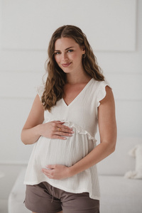 3411C/E Colanți de maternitate cu talie înaltă, cu nervuri - confort și stil în același timp - ecru