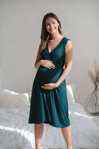 Cămașă de noapte de maternitate și alăptare Star Light din bambus Milk&Love, verde sticla