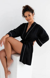 Kimono negru pentru femei - elegant cu curea în talie și mânecă ¾