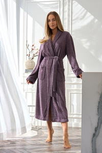 43595 Halat de baie Dextra Henderson culoarea piersicii pentru femei – moale, cu legături, sub genunchi