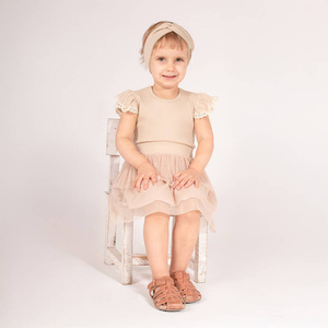 216166 Rochie de fetiță Lala – Nicol, bumbac, mâneci lungi, bej